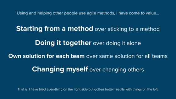 I gave a lightning talk called Manifesto for Flexible Agile Transformation in Scan-Agile 2019 conference. The manifesto consists of four…